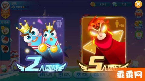 当玩家在游戏中将段位进阶至“白银3段”时,可开启另一大趣味玩法——2人团战。红、黄、蓝、绿、紫5支队伍的竞争将更加激烈,而双人作战的设定则更考验默契。2人团战与5人团战类似,玩家可穿过队友的身体,当2名玩家的蛇身总长度达到10000即可获胜。游戏地图上会显示出每个战队的即时总长度,并标记每个战队蛇蛇们的位置。利用好所有的战场因素,及时绞杀敌蛇,方是制胜的不二法门。
