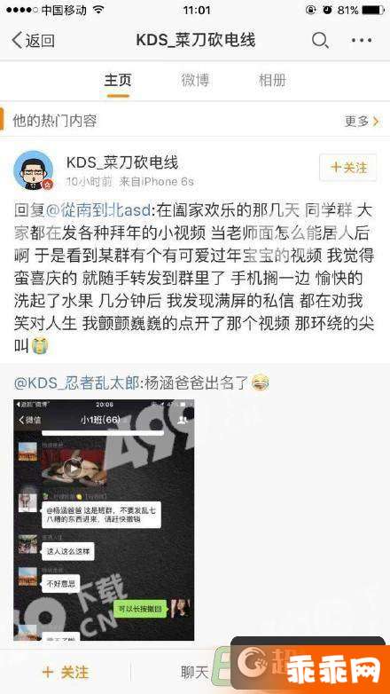 故事在一个幼儿园家长微信群,在前不久,杨涵爸爸看到微信群里大家都在发各种拜年的视频,然后自己也琢磨着发上一个,然而尴尬的不是他发的视频内容很污,而是他居然发了视频之后去洗水果去了。