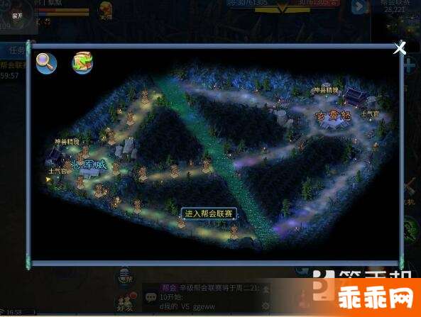 帮会联赛分为主战场和副战场,主战场的两个帮会出生在两边,攻击对方的炮台,把炮台血量打到0点则获胜。主战场只能帮会管理和精英带队才能进入,一个帮最多能进30人。