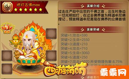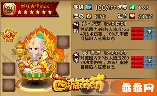资格老就意味着能力强,燃灯古佛绝对是一个资格相当老的英雄。《西游萌萌》里燃灯古佛可是一位非常出色的法术英雄,这个英雄的最大特点是可以对目标造成眩晕效果,如果玩家的人品非常强,那么燃灯古佛爆发出来的战斗力就会突破天际。