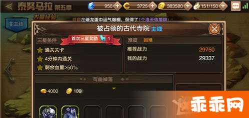 三星通关条件:通关关卡、4分钟内通关、剩余血量>50%