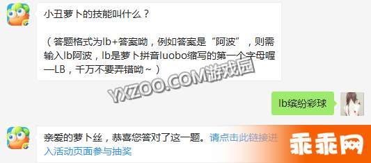 小丑萝卜的技能叫什么?(PS:可在公众号内找答案,答题 格式为lb+答案呦,例如答案是“阿波”