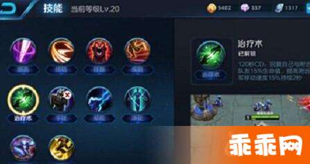 辅助若能发挥出本色,作用并不逊于任何一个C位的英雄。团战的时候奶一口,比带击杀技能对团队的贡献更大。治疗术是目前最适合大乔在辅助这个定位上的携带的技能。在对这个英雄不熟悉的情况下玩容错率也比较高,不至于瞬间没命或连累队友。
