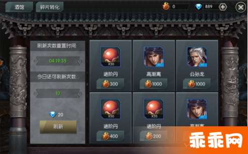 通过转换不需要的武将碎片,我们可以获取英魂值,英魂值在英魂商店中不仅可以购买武将,更可购买到进阶丹等珍贵道具。