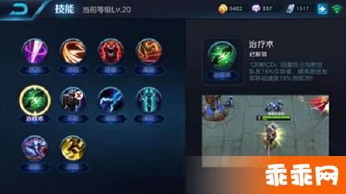 辅助若能发挥出本色,作用并不逊于任何一个C位的英雄。团战的时候奶一口,比带击杀技能对团队的贡献更大。治疗术是目前最适合大乔在辅助这个定位上的携带的技能。在对这个英雄不熟悉的情况下玩容错率也比较高,不至于瞬间没命或连累队友。