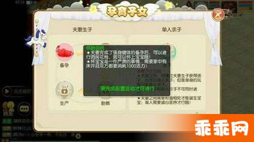 关于双人求子,夫妻双方在确定生子后,女方需要作为队长开启生产,之后需要夫妻共同完成一系列任务才能获得宝宝,这些任务相辅相成每一步都不能跳过,需要夫妻共同努力才能完成哦。关于单人求子,单人求子需要参与“送子观音”活动,累计足够积分即可获得子女,玩家可以通过上供和求签获得积分,但每日只能进行一次。