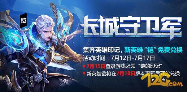 7月12日至7月17日,只要你集齐了7张不同的英雄印记,就可以在7月18日至7月23日间免费兑换我们的新英雄“铠”啦!