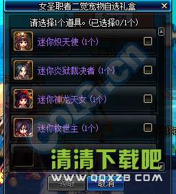 开启后,可以从4种女圣职者二次觉醒迷你宠物中选择1种获得