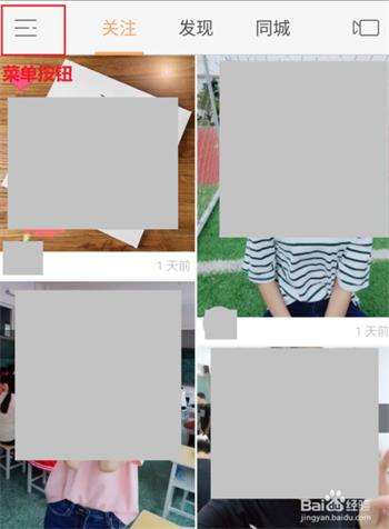 1,打开快手,进入主界面,点击左上方的“菜单”选项。