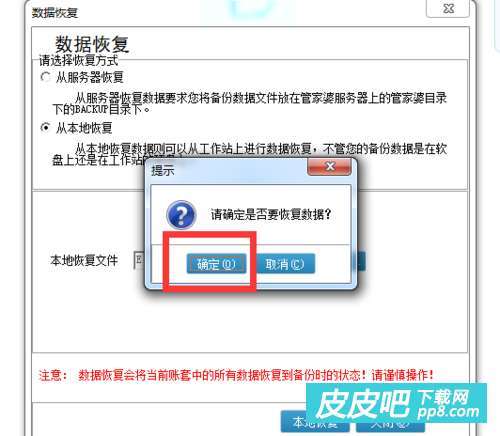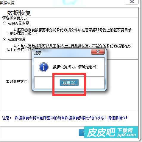 待数据恢复完成会弹出如下界面,点击确定并重新登录,数据已经恢复至备份时的状态。