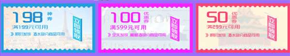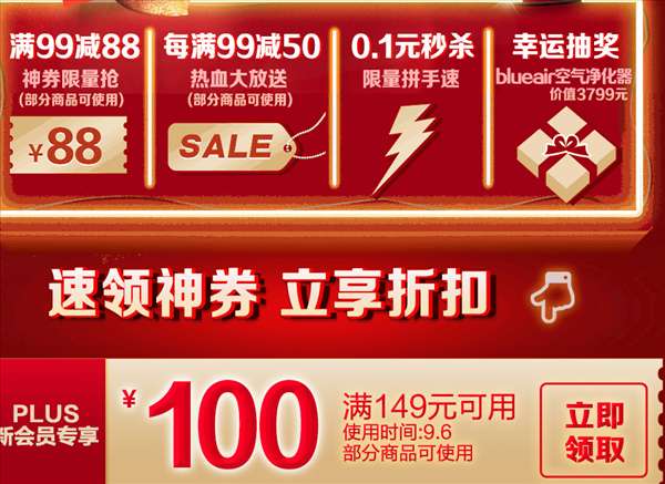 京东105-5、199-10、299-15、399-20元全品类优惠券