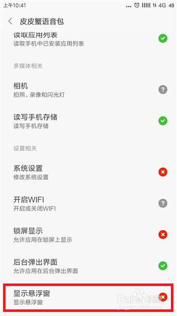 接着在应用管理选项的下方找到【皮皮蟹语音包】软件并点击设置权限。