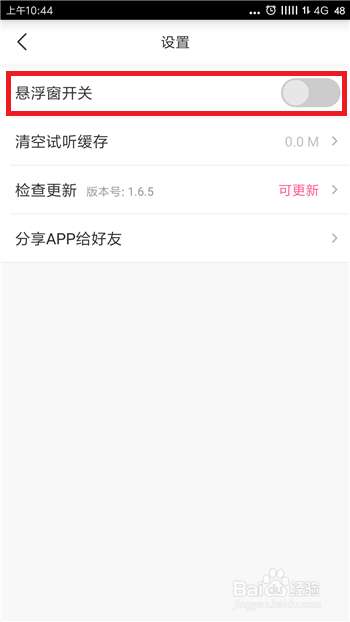 在设置功能中第一个是【悬浮窗开关】,把后方的开关给选择打开。