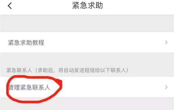 3、这样一来,大家在点击“管理紧急联系人”;选项后,就可以添加最多5个紧急联系人,让你在求助之后,自动将求助短信发送给他们。