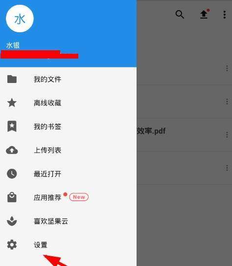 1、用户们想在坚果云里设置密码锁的话,那就需要先点击左上角按钮进入个人功能列表,然后选择“设置”;选项打开页面。