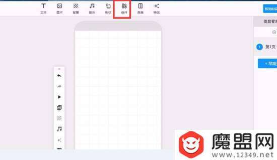 1、首先需要进入到易企秀的主界面,在上方显示操作台后,找到操作台上的“组件”;选项按钮并点击它,如下图所示: