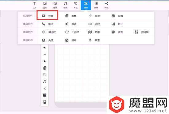 2、点击之后将会出现各种常见组件、基础组件、高级组件、微信组件功能可以说是很多呢,之后点击“视频”;组件选项,如下图所示: