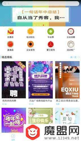 1、首先先进入易企秀界面,使用搜索功能进行搜索模板或者直接选择一个模板,如下图所示: