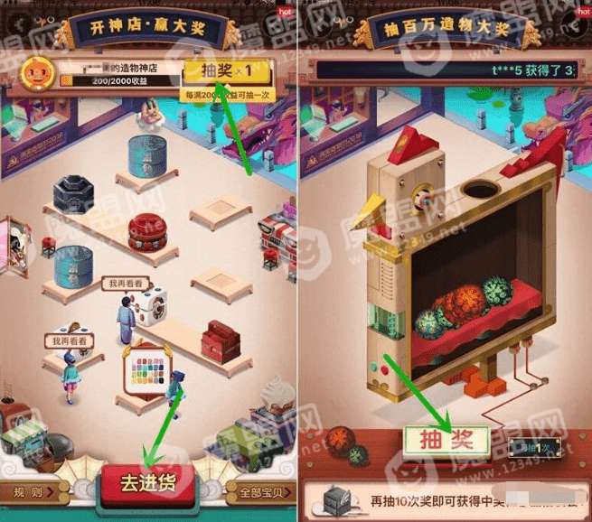 而在寻宝开神店的小游戏里,大家需要进货卖出领金币,当赚足2000金币后,就可以兑换一次抽奖的机会,其中提供了话费券、优酷体验会员、饿了么超级会员、淘票票电影券等奖励!