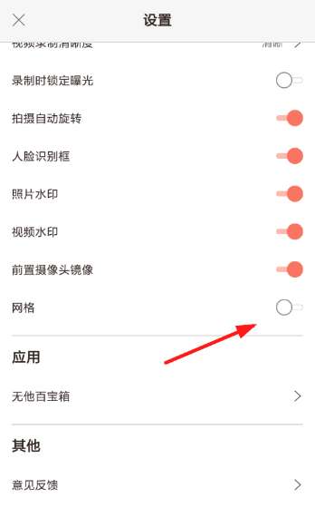 2、而在进入设置页面后,我们通过下方的列表就可以直接点击开启“网格”;功能,而所谓的九宫格模式就是指网格功能。