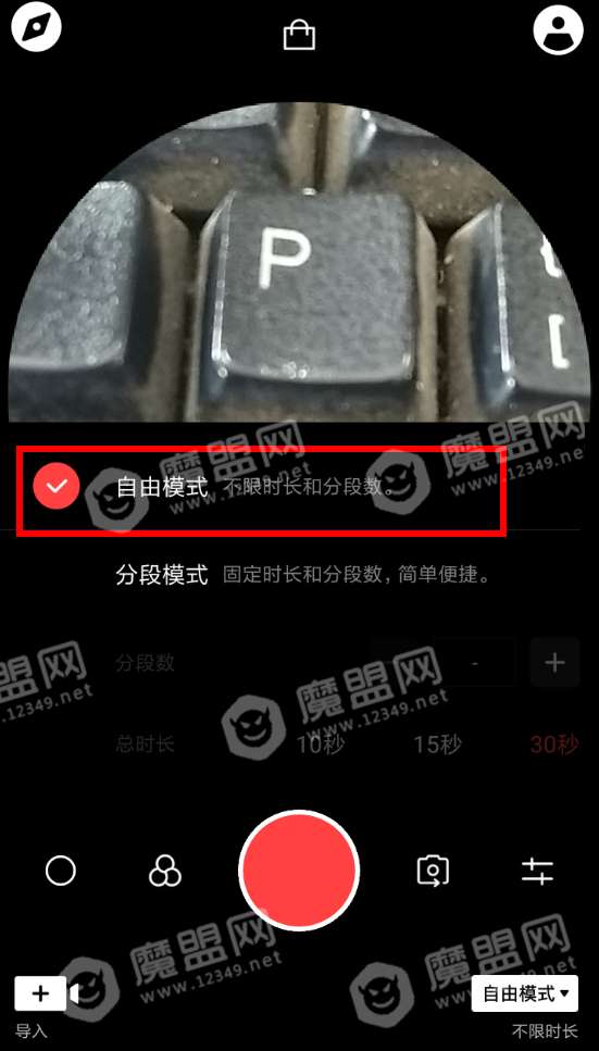 1、用户们要想在vue里设置分段时长,那就应该先从拍摄页面的右下角点击“分段模式”;选项,从而打开列表进行设置。