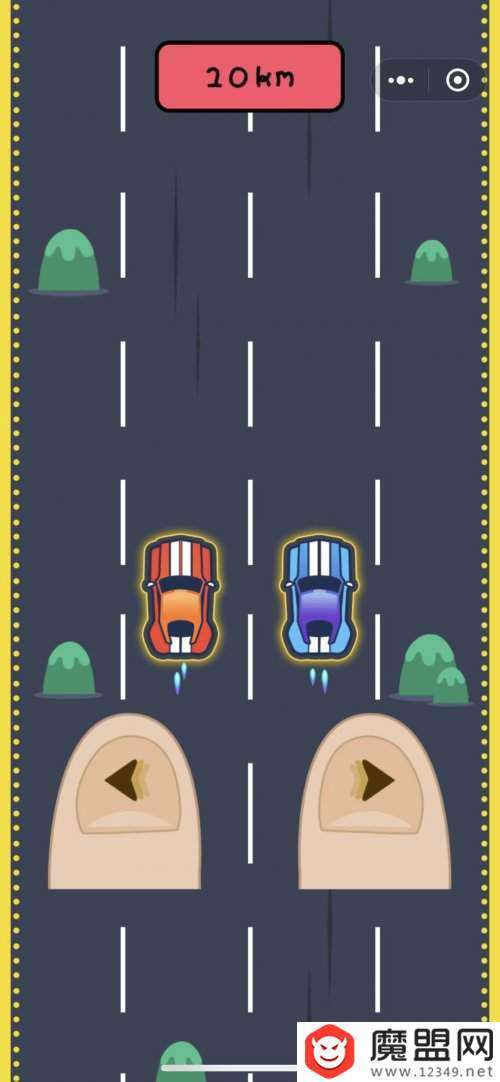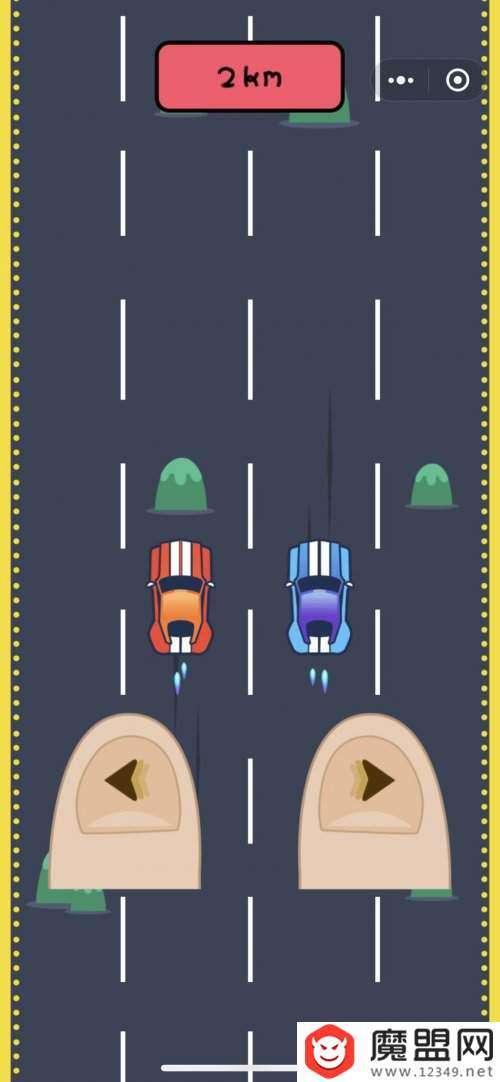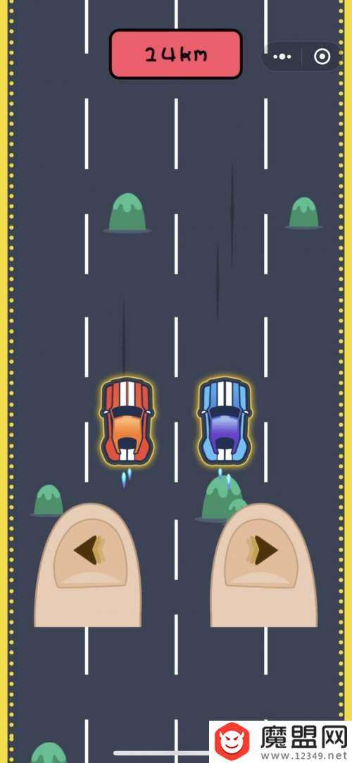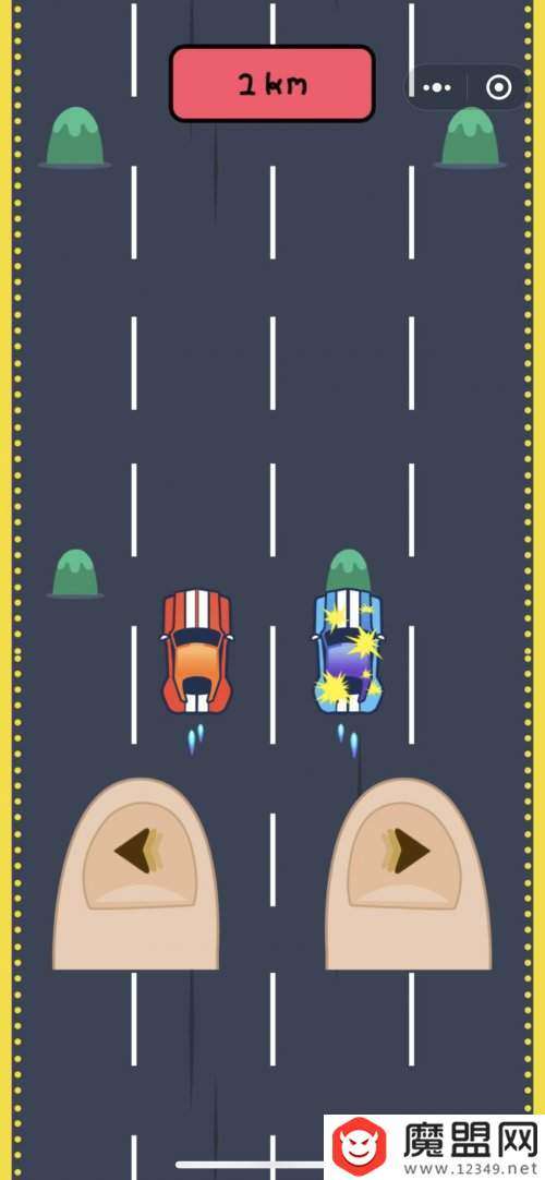 但是!真是看起来简单玩起来难!因为有两个赛车同时前进,所以左右手要分别控制两个赛车,小编这时候真的是狠自己的手指头不好使,分分钟就撞上了障碍物!
