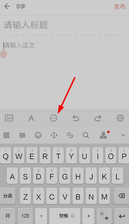 2、接下来从文章编辑页面里点击下方的“...”;按钮,并且输入文章内容,就可以开始添加超链接了。