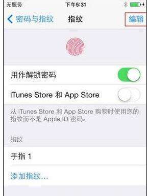 7.点击继续,可以对录好的指纹进行设置,也可以选择继续添加指纹,如果需要删除之前设置的指纹,可以点击右上角的编辑按钮