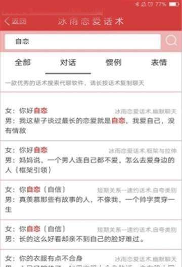 1、全新的聊天话术软件,让你轻松学会聊天撩妹哦。