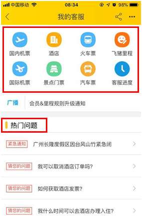 3、在我的客服界面,下方将会出现当前很多用户存在的热门话题,在里面找找看吧~如果确实没有自己想要的答案,可以在上方红框标注内选择自己问题的类型,如下图所示: