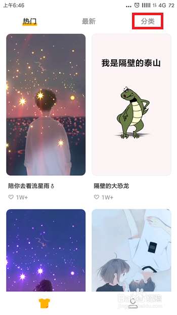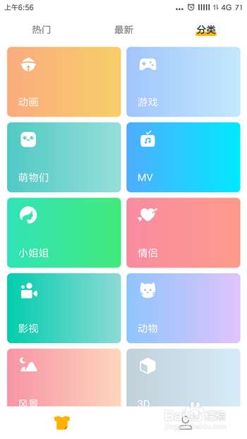 打开豹来电后在首页中的是当前比较热门的来电显示,如果大家想要找自己喜欢类型的可以点击【分类】。