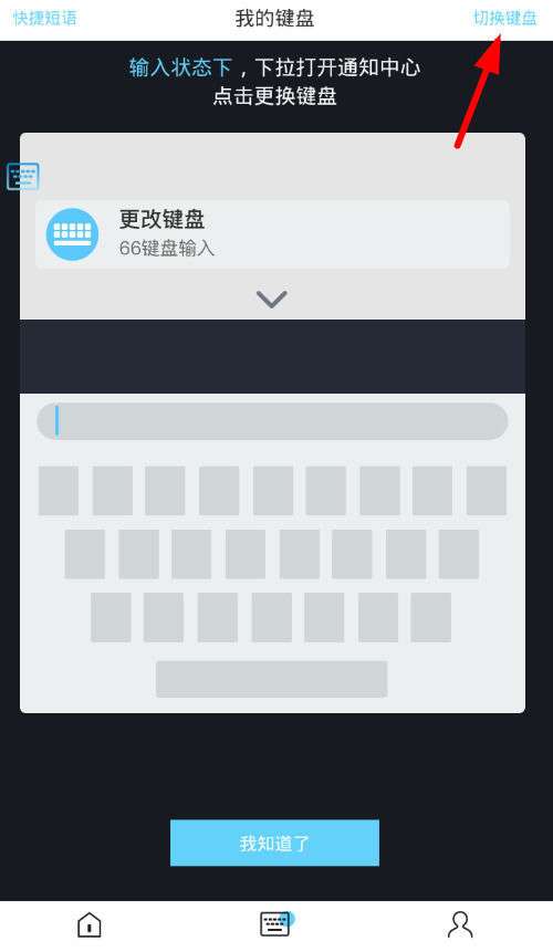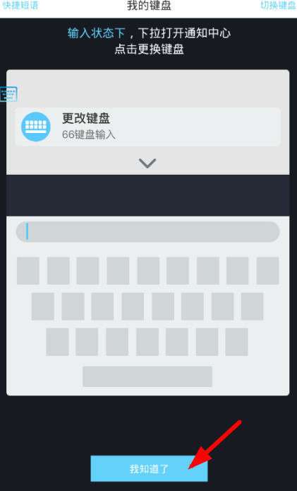 3、设置完毕后选择下方的“我知道了”;按钮,去寻找自己要切换的输入法。