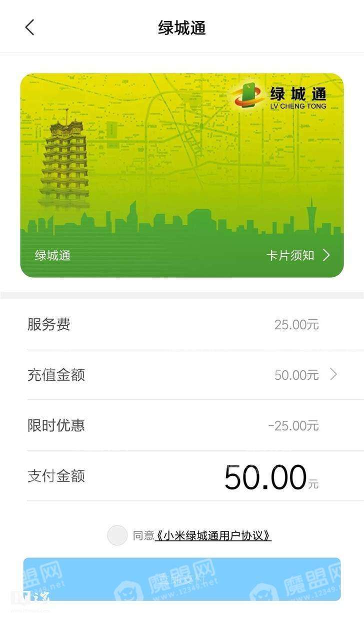 开通“绿城通”;·小米公交后,享受“绿城通”;普通优惠卡相应折扣(公交8折、地铁9.5折),市民可根据自身需求选择相应金额进行充值。
