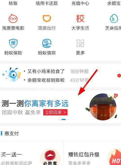 1、目前来说,用户们可以直接进入支付宝首页通过活动横幅找到“测试你离家有多远”;的活动,也可以尝试通过下方的地址链接点击进入活动页面