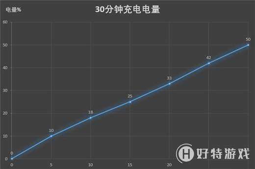 从测试图中可以看到,30分钟即可充入50%的电量,在这个遍地快充的年代,这个成绩也是十分亮眼了,这样的快充水平可以保证平时手机随充随用。可以看出,魅族在充电领域依旧是站在行业第一梯队中的一员。