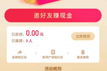 近日,腾讯为了推广微视APP,为广大用户推出了最新的赢红包活动,在本次活动之中,大家可以通过邀请好友的方式获得现金红包哦,在我们赚取了现金红包之后,只需要动动手指,我们就可以立即实现提现,相信大家都不会错过这种免费领红包的机会吧!那么腾讯微视红包怎么领取呢?接下来小编就为大家带来解答,一起来看看吧。
