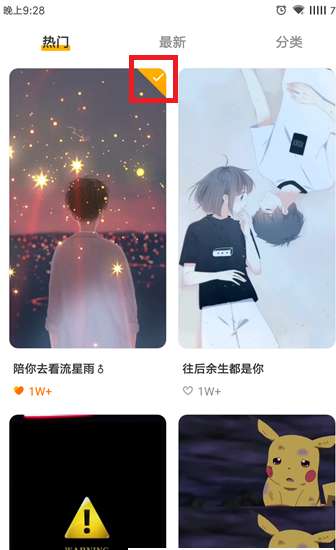 进入到豹来电后找到我们之前设定为来电秀的视频并点击打开,右上角有【√】的就是当前使用的。