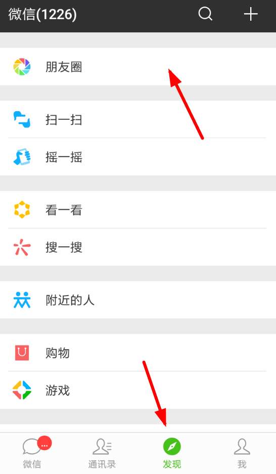 1、其实想在微信朋友圈里使用微视进行拍摄的话,大家应该先从微信页面的下方点击“发现”选项,然后进入“朋友圈”的页面里。