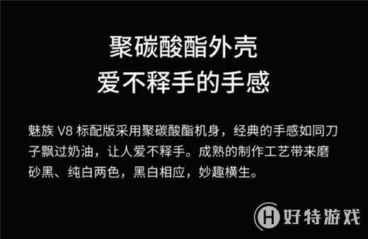 标配版魅族V8采用聚碳酸酯机身,拥有成熟的制作工艺,带来经典的手感,拥有磨砂黑和纯白两种配色。