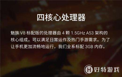 标配版魅族v8所搭载的4核A53处理器,内置3200mAh容量电池,也能满足日常使用需求。