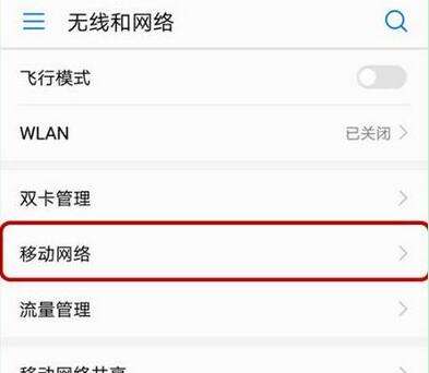 3、在无线和网络菜单下点击进入【移动网络】,