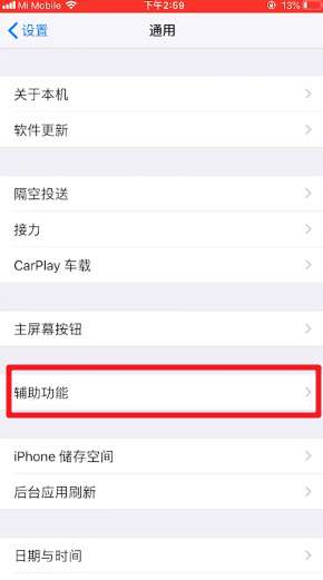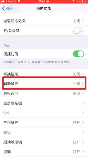 最后将【辅助触控】右侧开关打开,悬浮球就显示了。