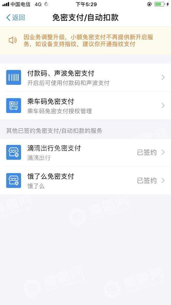 然后我们便可以看到了免密支付和自动扣款的应用。