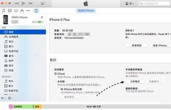 5、随后请在iPhone的管理摘要界面中,点击“立即备份”按钮,根据个人的需要来选择备份手机上的数据。