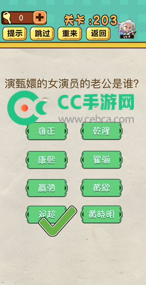 神脑洞游戏第203关的问题是:演甄嬛的女演员的老公是谁?其实这道题很简单,就是很绕,大家不要被选项迷惑了哦。下面赶快来看下正确答案,以及相对应的答案解析吧。