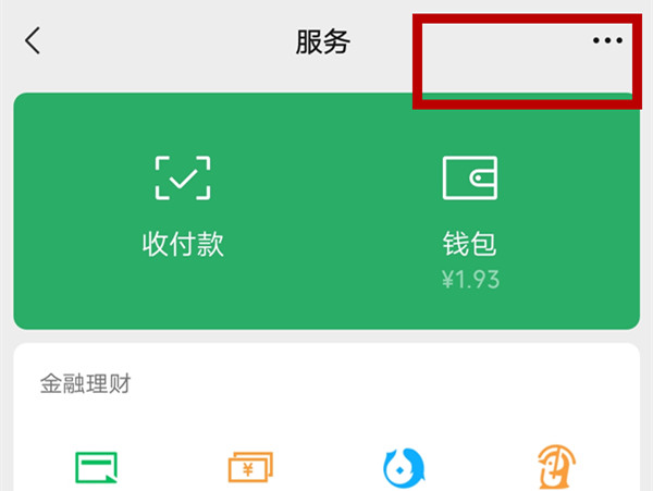 2、点击服务界面右上角三个点图标,进入支付管理。