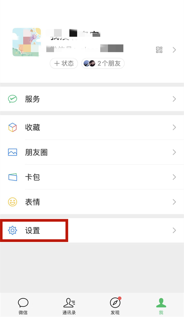 1、打开微信,在微信我的页面,找到下方【设置】选项,点击进入。