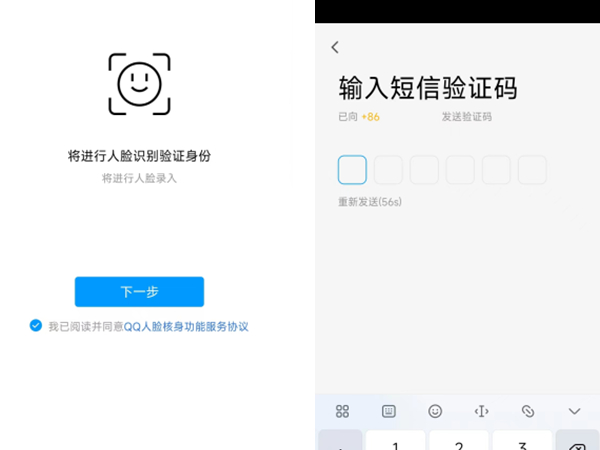 4、勾选协议,点击下一步,输入验证码之后,录入人脸即可开启人脸识别登录。