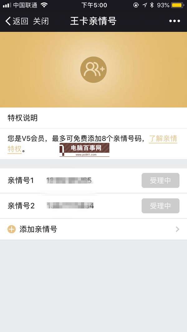 腾讯王卡可以添加几个亲情号?