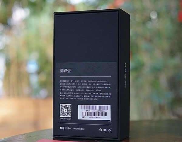 包装背面是产品信息,上面标有智能语音翻译机,型号为GTA07。值得一提的是,这款产品由网易有道信息技术和青岛冠义科技两家公司联合出品。